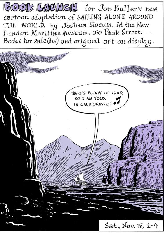 In November, our Jibboom speaker is Jon Buller who will discuss his new graphic novel version of Joshua Slocum's 'Sailing Alone Around the World' -- a new exhibition at the Custom House.