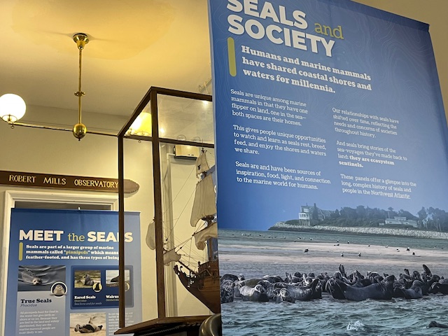 This traveling exhibition from the New Bedford Whaling Museum, is being installed this week. It will be on view at the Custom House from January 24—March 22, 2026. The multi-panel display dives into the daily lives of these remarkable, specially adapted animals—focusing on harbor and gray seals, the two species most common in our region.